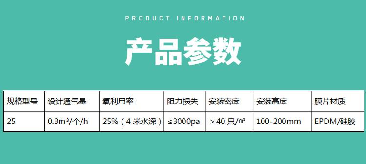 單孔膜曝氣器由ABS材料制作成的上、下管夾和配套橡膠膜片組合而成的新型供氣充氧裝著。在曝氣生物濾池工藝中,單孔膜曝氣器通過向濾料層強(qiáng)制輸送高流速的空氣來滿足濾料上的微生物新陳代謝所需要的足夠和穩(wěn)定的氧份。整個濾池內(nèi)部的布?xì)饩鶆颉饬糠€(wěn)定提高了系統(tǒng)的有機(jī)負(fù)荷要求。