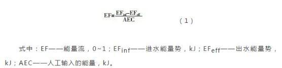 能量流分析是將進出污水處理系統的各種污染物按照能量的方式統一計量,將污水處理廠的運行效果從物質角度的多指標評價轉化成從能量角度的單一指標評價。能量流的定義如式(1)所示。